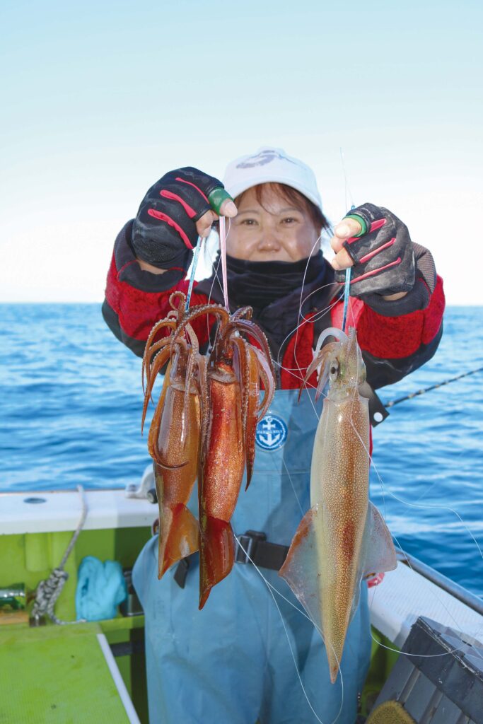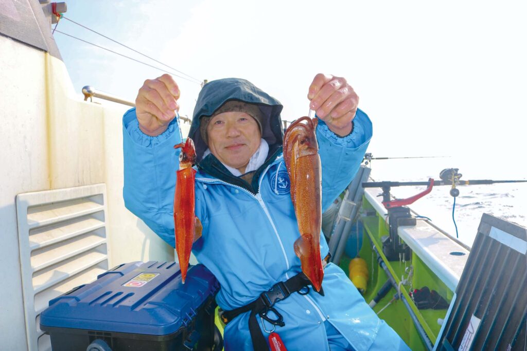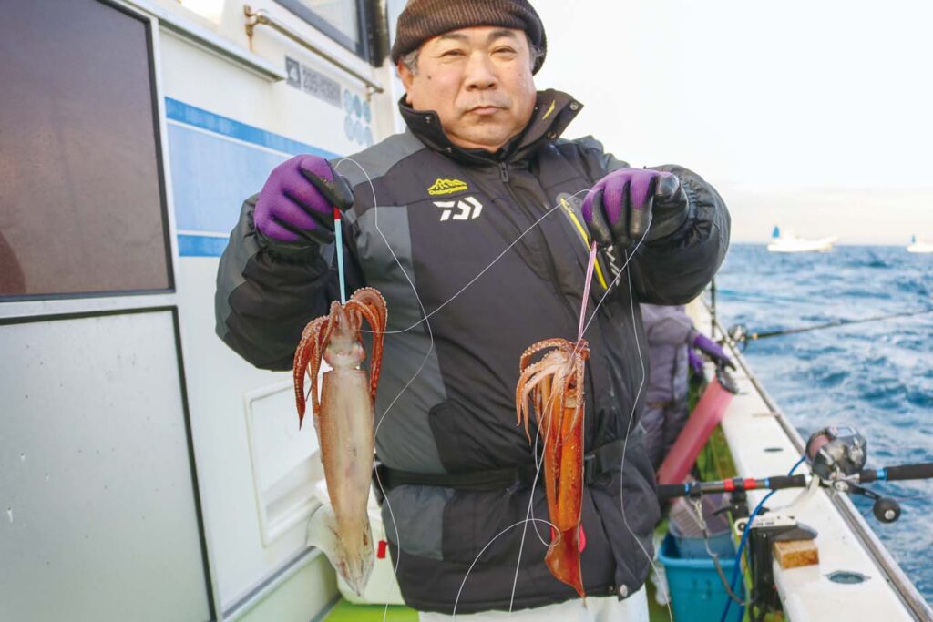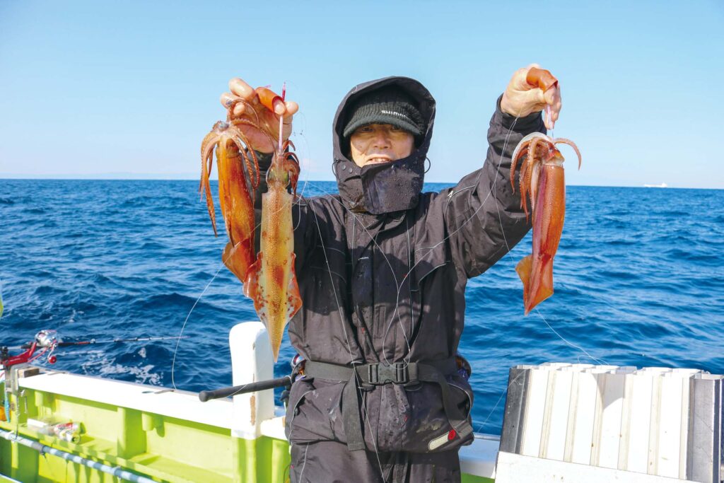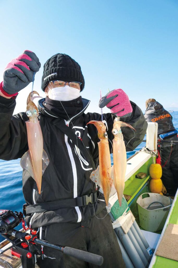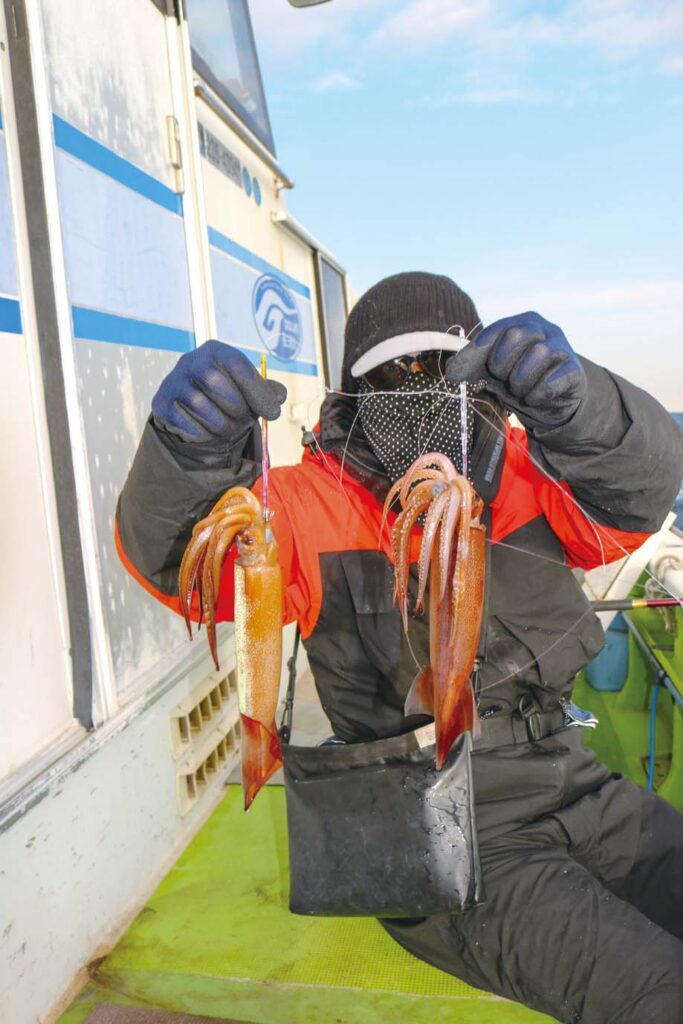 時期的にはヤリイカシーズンだが、厳冬期にあってもスルメイカが数釣りできることが近年ではよくある。今シーズンも同様で、三浦半島葉山あぶずり港の長三朗丸では目下のところ両狙いでにぎわいを見せている。