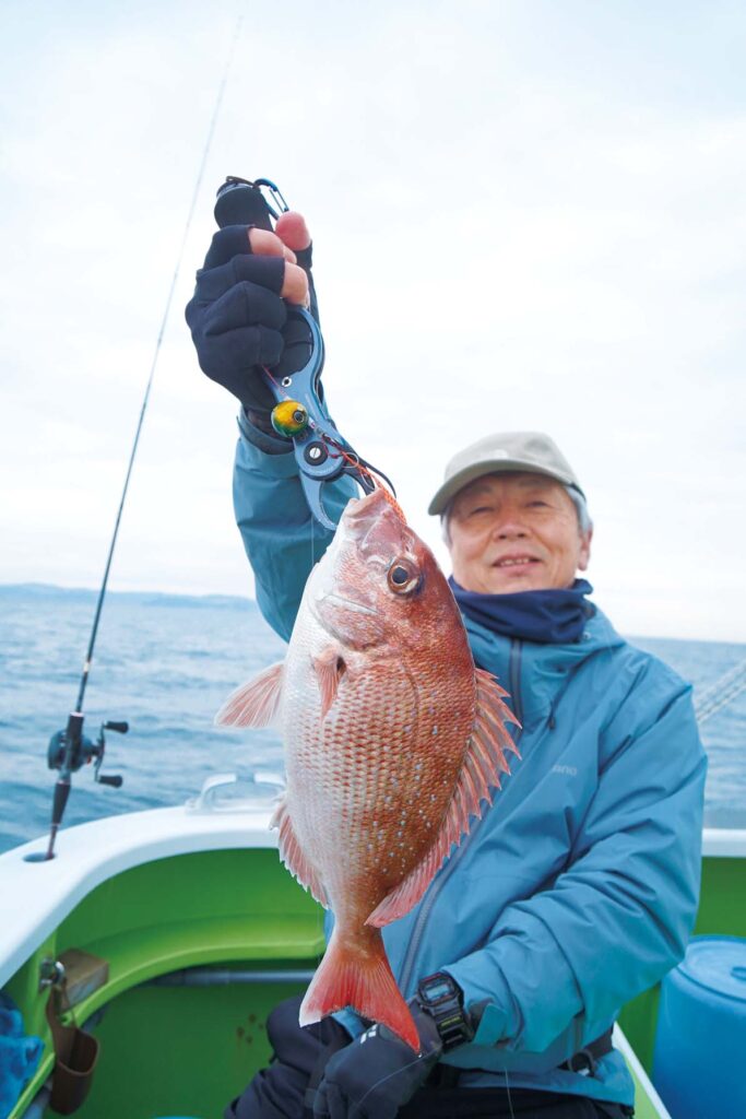「マダイは浮いてるので25メートルくらいまで探ってください。巻きのスピードも早めじゃないと食ってきません」とは東京湾奥金沢八景・弁天屋の本田和芳船長。
